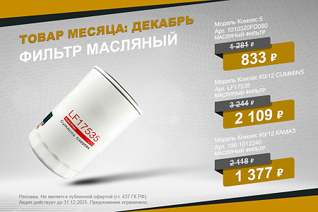 Специальная цена на масляные фильтры для КАМАЗ Компас до 31 декабря.