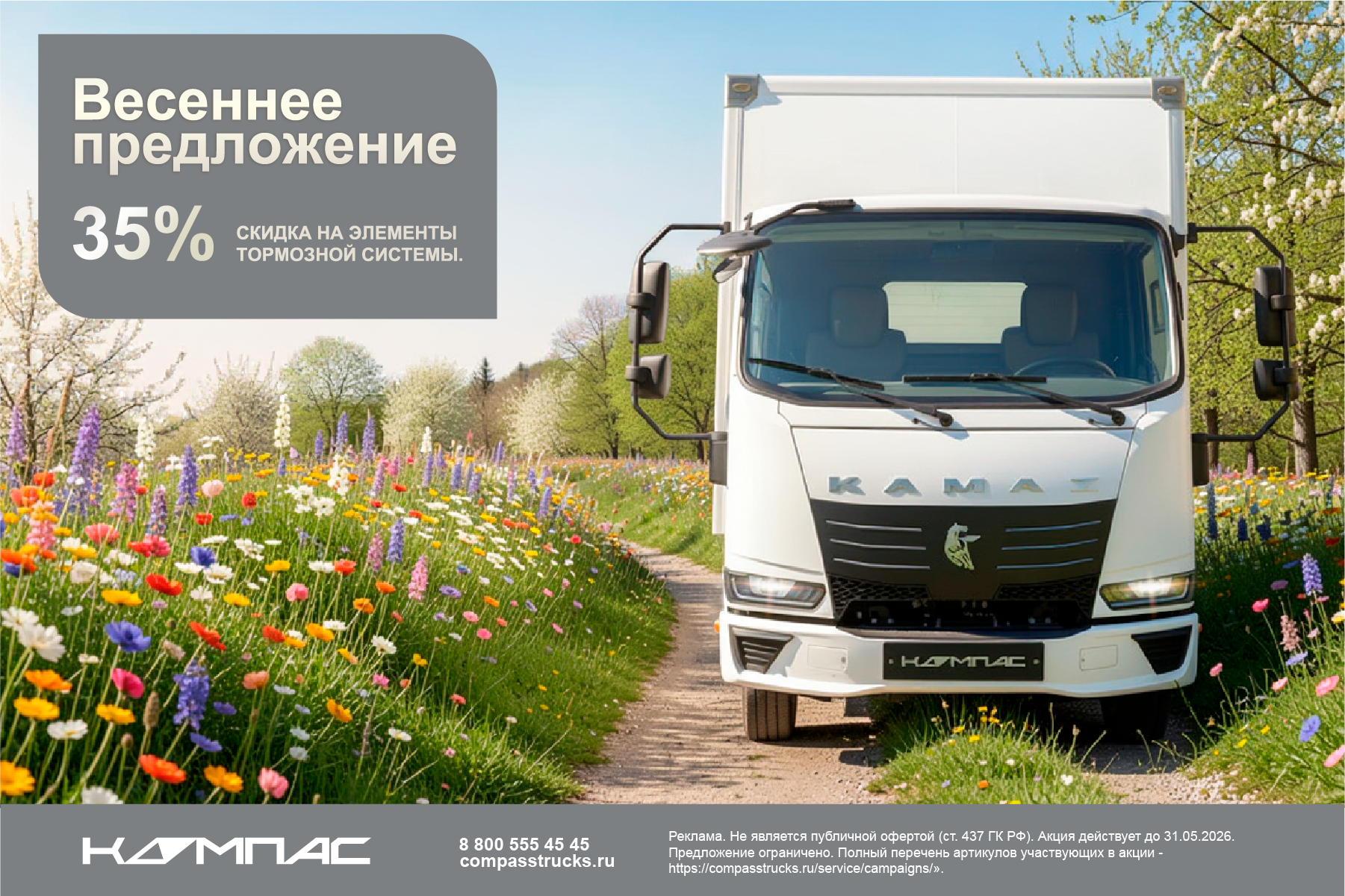 Специальное весеннее предложение на элементы тормозной системы для КАМАЗ Компас до 31 мая.