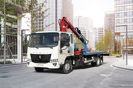 Среднетоннажный грузовой автомобиль КАМАЗ Компас 9 c холодильной установкой Thermo King и гидробортом Dhollandia, а также эвакуатор с КМУ на шасси КАМАЗ Компас 9 приняли участие в международной выставке «Иннопром 2022», которая прошла в начале июля в Екатеринбурге.